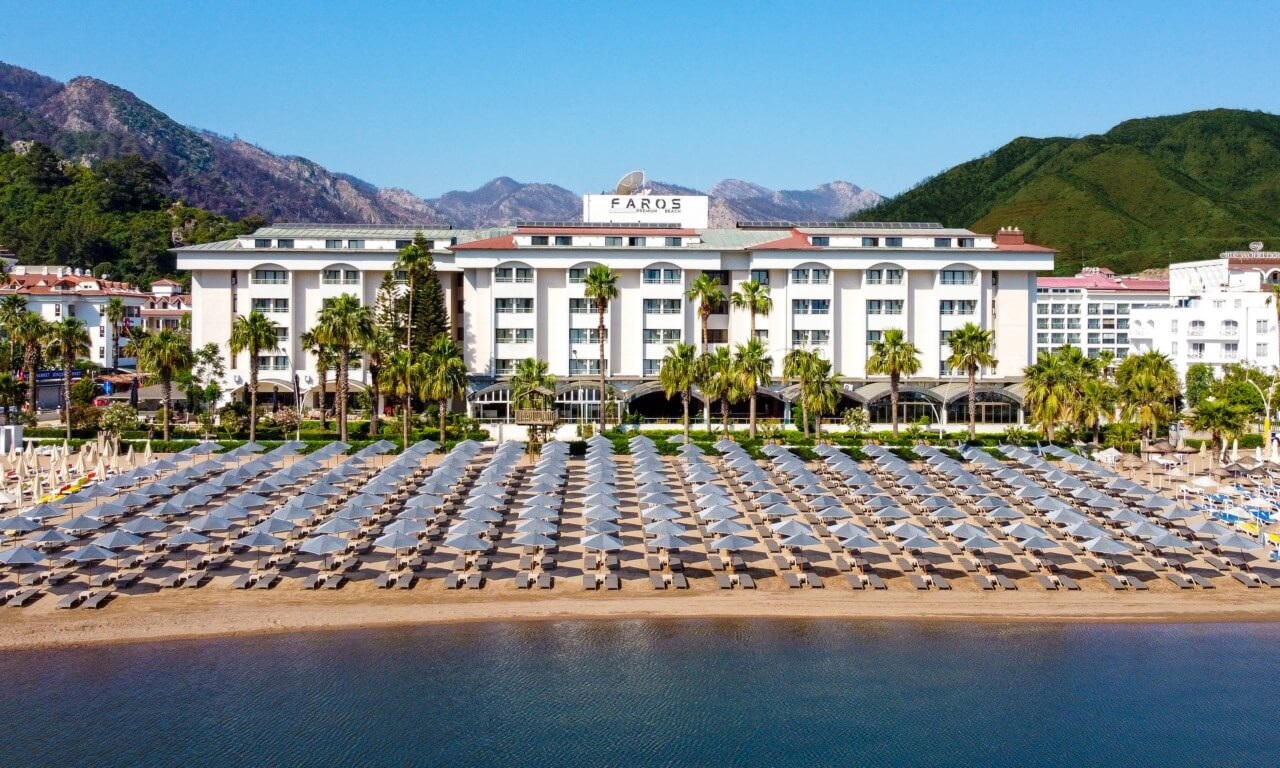 Hotelul FAROS PREMIUM BEACH 5 este situat în inima orașului Marmaris, unde frumusețea uluitoare a naturii se întâlnește cu apele turcoaz, Hotelul FAROS PREMIUM BEACH 5* cu arhitectura sa atrăgătoare și atmosfera caldă, vă invită la o vacanta unică .